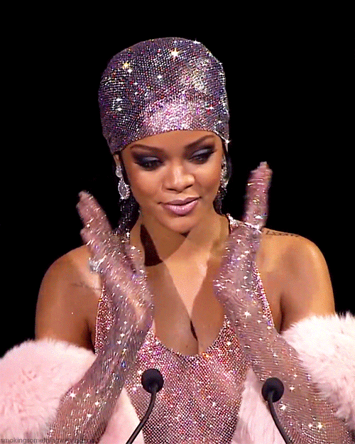 Rihanna in our sheer, crystal-encrusted gloves for the 2014 CFDA Fashion Awards